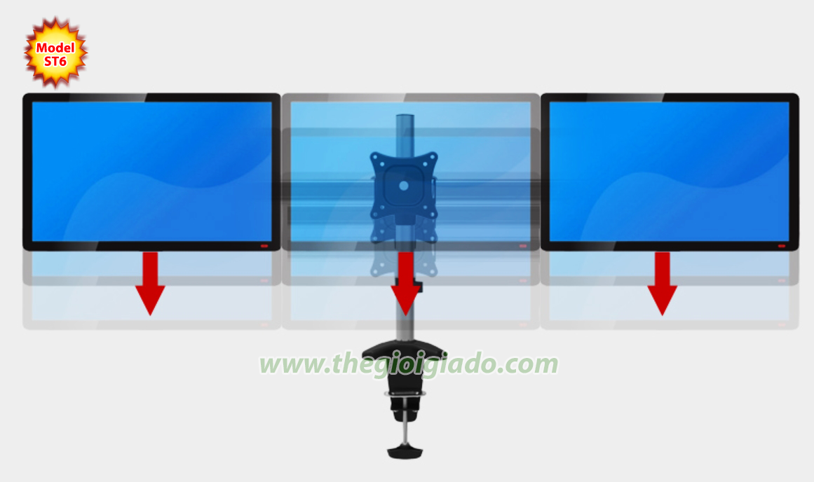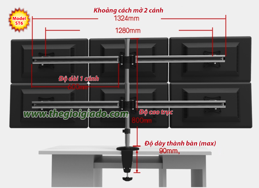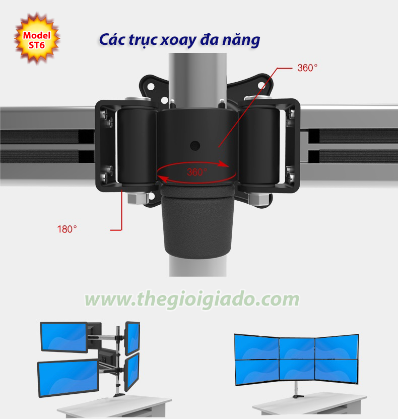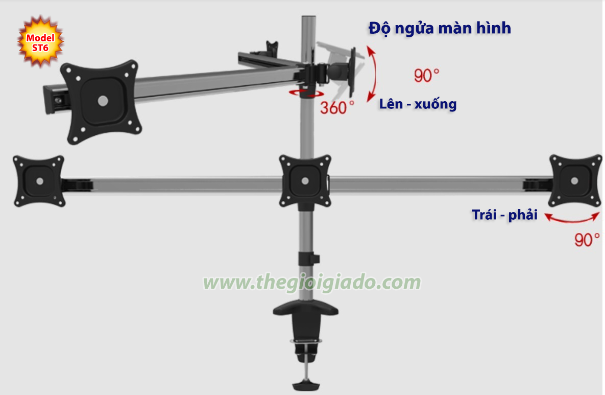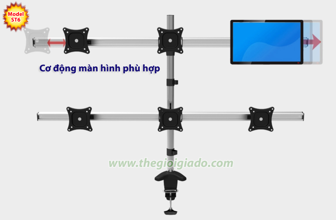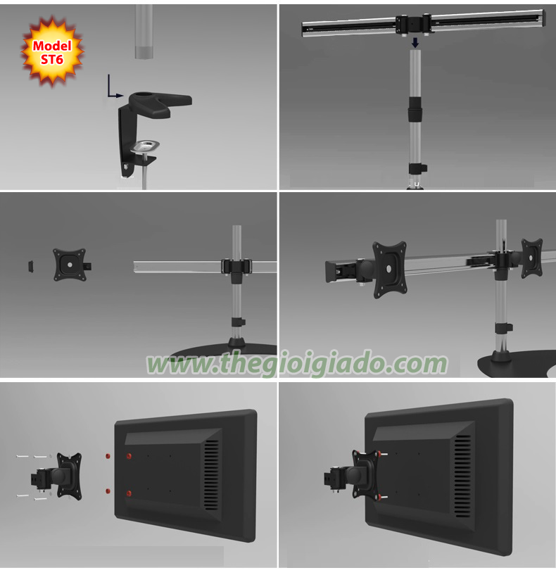 - Model ST6 là model phép đỡ sáu màn hình máy tính LCD theo kiểu đứng.