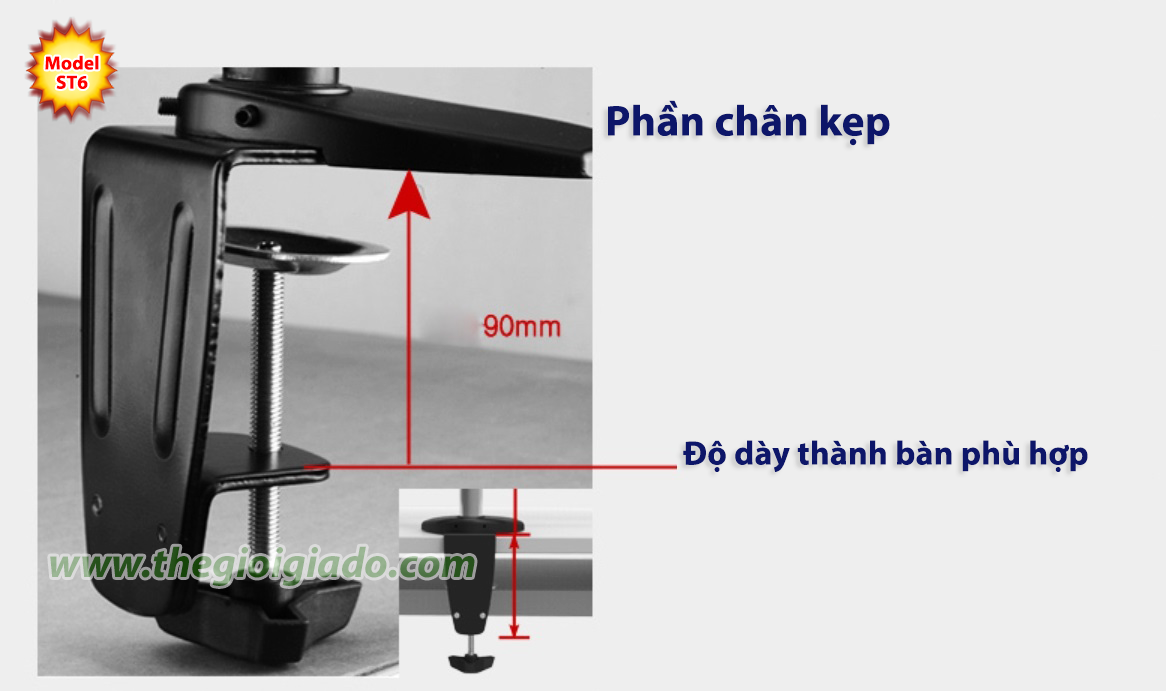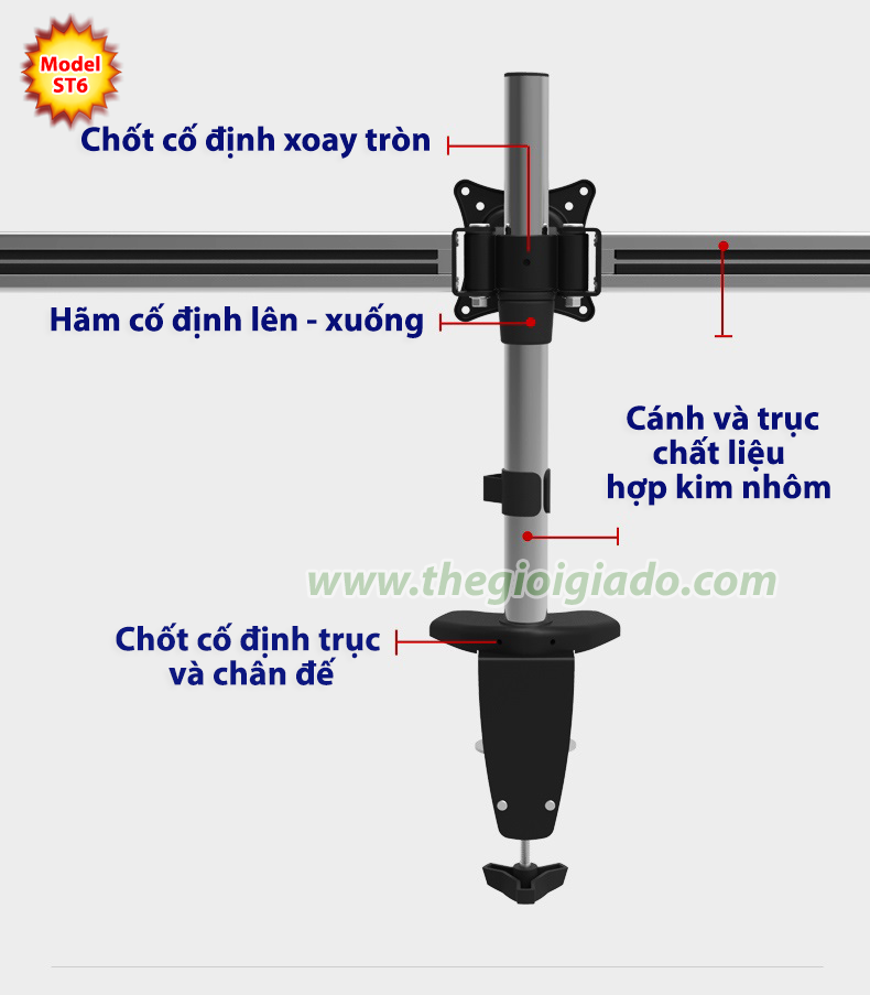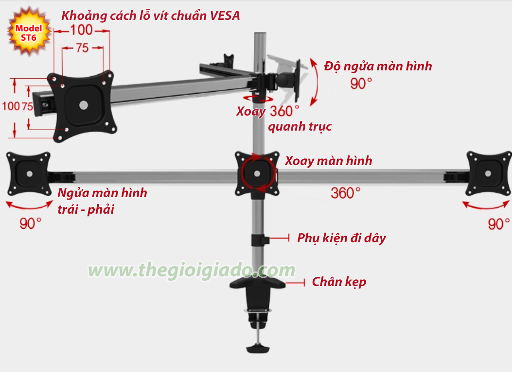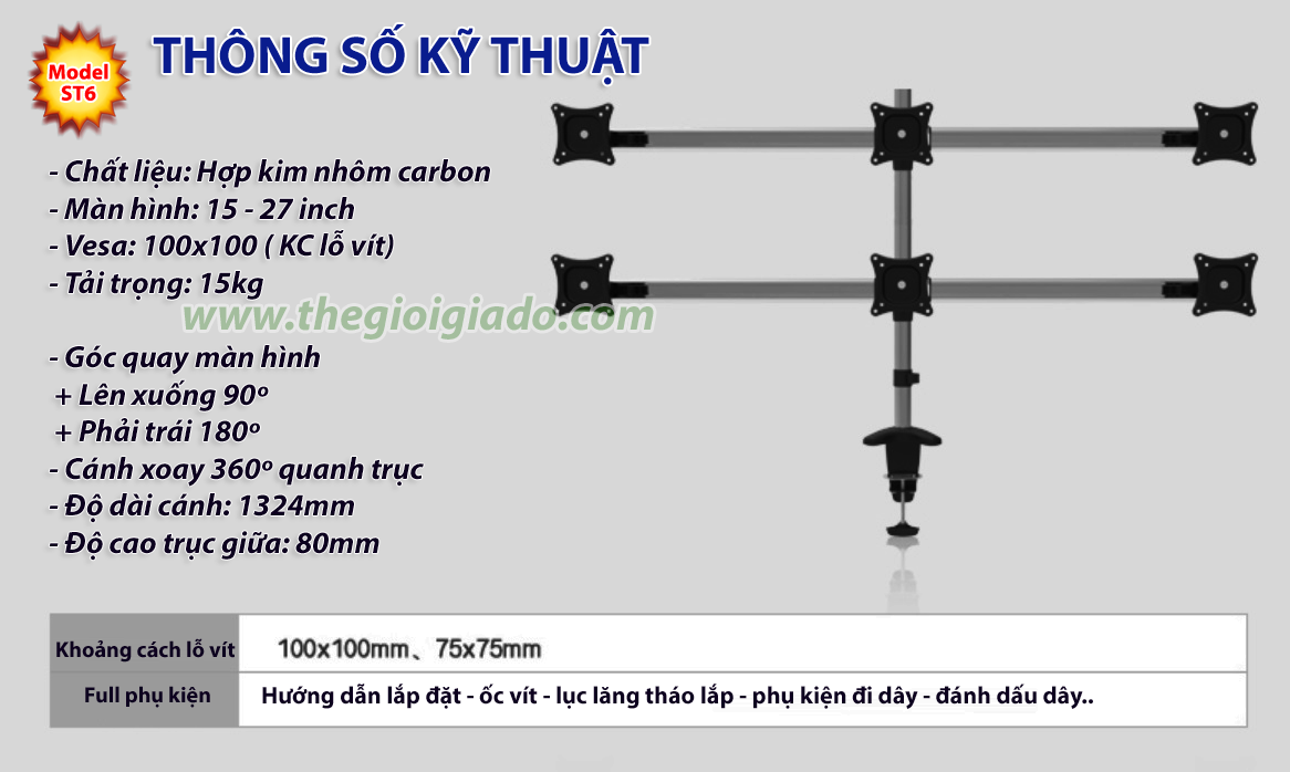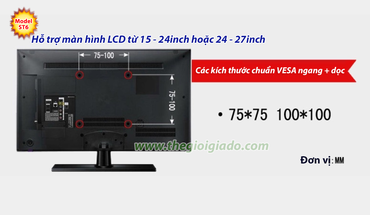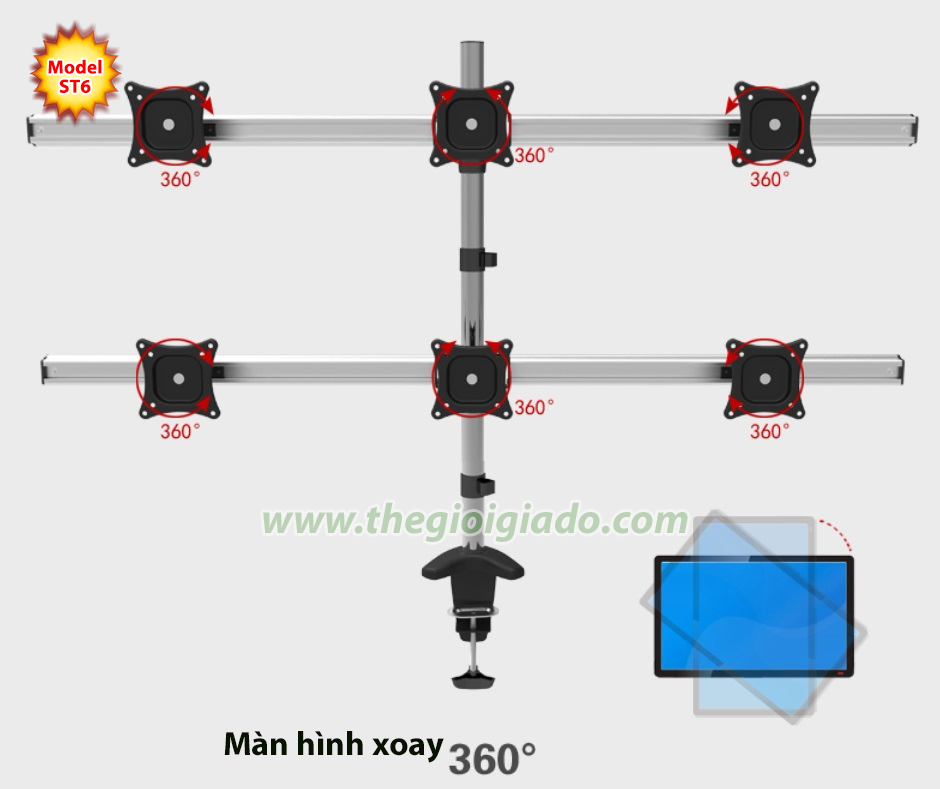 - Model ST6 là model phép đỡ sáu màn hình máy tính LCD theo kiểu đứng.
