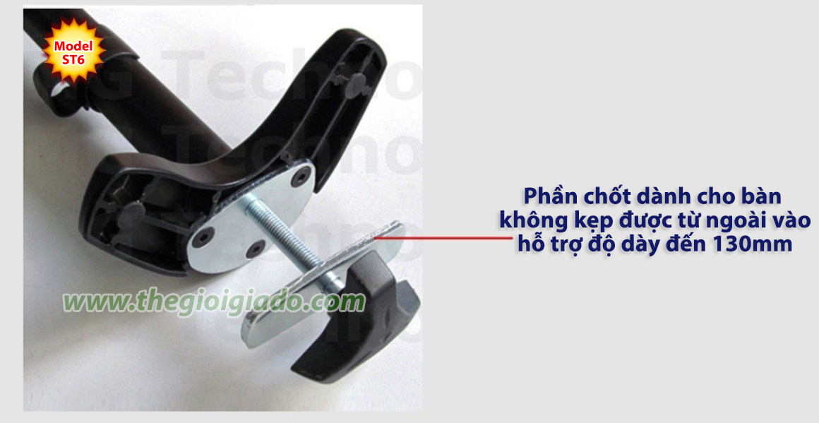 - Giá đỡ sáu màn hình LCD máy tính ST6 có hai kiểu chân: chân kẹp và chân đế.